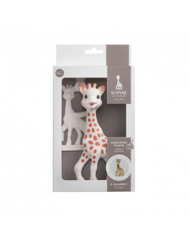 Caja de regalo concurso foto Sophie la girafe, el cual incluye a Sophie la Girafe más un anillo de dentición ¡de regalo!